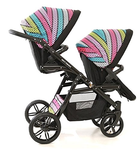 Car Double Gemelar. Children different Ages. 2 Chairs + 1 Tote Bag + Accessories. negro-colores. Onyx Tandem is available in Doubles & Tandems