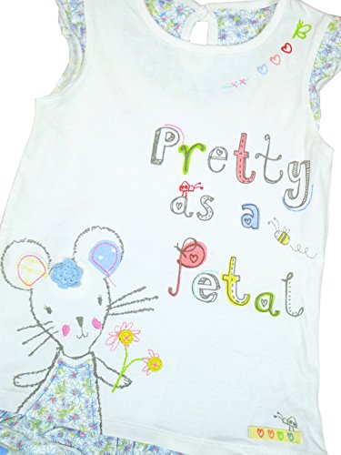 Beautiful Baby Girls Outfit Set. Stunning Pretty as a Petal Sleeveless Top, Cute Mouse Print Front & Floral Frill Sleeves/Hem. Matching Baby Blue Stretch Waist Bottoms. Great Gift Idea. Superb Quality.