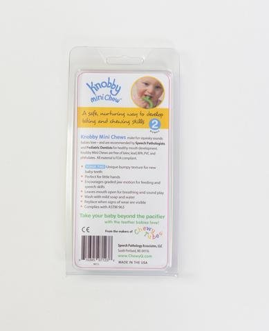 Knobby Mini Chews make fun squeaky sounds baby love, and are recommended by Speech Pathologists and Pediatric Dentists for healthy mouth development. Made in Maine.