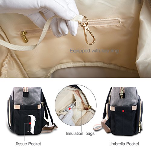 HEYI Diaper Bag Backpack Travel Large Spacious Tote Shoulder Bag Organizer (Gray-Black) is available in Nappy Backpacks
