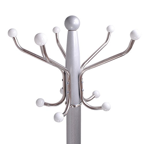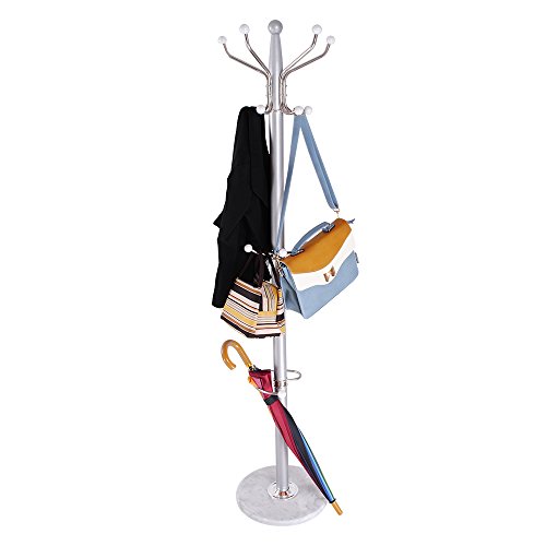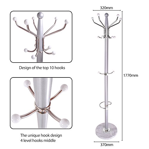 Hapilife 15 Hanging Hook Traditional Floor-Standing Hat and Coat Stand With Marble Base - Multiple Colour (Silver) is available in Coat Racks