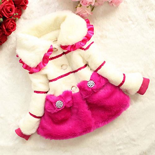 Happy Cherry kids Baby Small Children Girls Winter Princess Fur Coat Thick Jacket Size 80 - Rose red is available in Snowsuits
