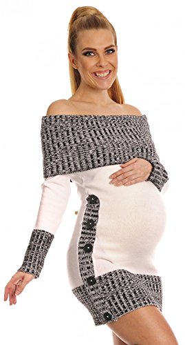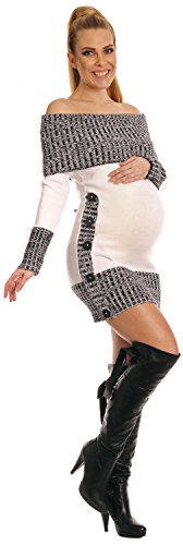 Happy Mama Women's Maternity Bardot Knitted Jumper Dress Pullover Sweater. 913p (White, 10/14) is available in Knitwear