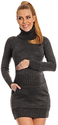 Happy Mama Women's Maternity Stretchy Knitted Tunic Mini Dress Roll Neck. 178p (Graphite, UK 8/10) is available in Dresses