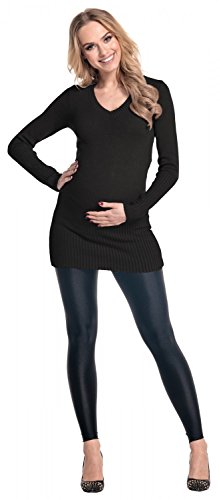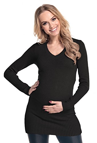 Happy Mama Women's Maternity Stretchy Knitted Tunic Jumper Pullover Sweater 907p (Black, 8/14) is available in Knitwear
