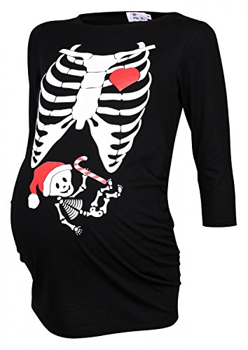 Happy Mama. Woman's Maternity Xmas Santa Baby Skeleton X-ray Top Shirt Tee. 883p (Black, UK 16/18) is available in Tops & Tees