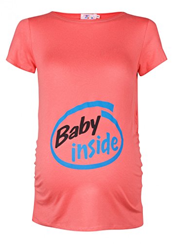 Happy Mama. Women's Maternity *Baby Inside* Top Shirt Tee Short Sleeve. 003p (Coral & Blue, UK 12/14) is available in Tops & Tees