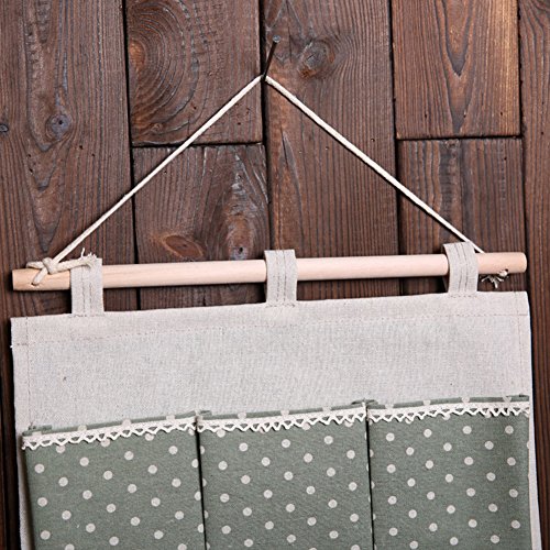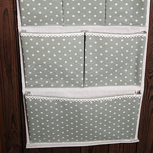 Keep your scissors, pens,craft tools and other accessories neatly stored and out of the way with this wall door hanging organizer,There are many different things this could be used for! Don't need to worry to find your key, card,in the pocket,everything will be convenient,Let you no longer worry about messy life.Made of natural linen cotton fabric,Hang on the wall and door, practical for saving space in your home,this durable storage rack will keep your dorm room, office and home organized for many years to come. High quality canvas with very cute polka dots design works great for holding bills, checkbook, pens/pencils, phones, kindles, the general junk ,baby's socks ,awesome organizer! It is a heavy gauge material that will last a long time.