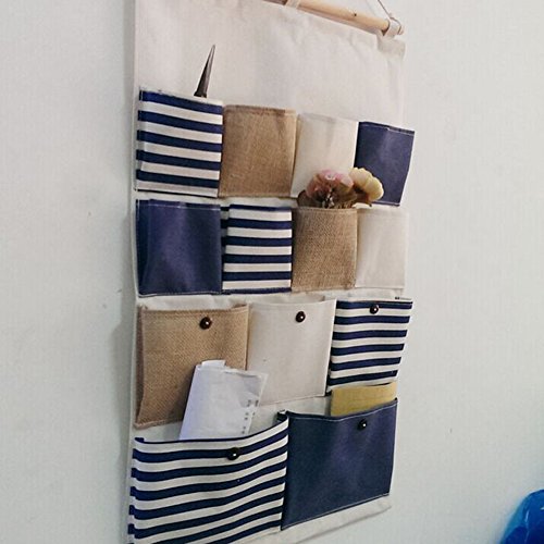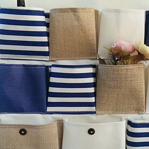Highdas New Style Cotton Fabric Larger 13 Pockets Wall Door Closet Hanging Storage Bag Organizer Retro Navy Stripe-Blue is available in Organisers