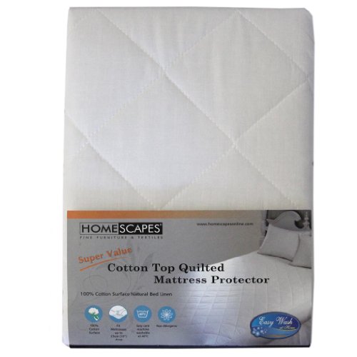 Homescapes King Size 100% Cotton Top Quilted Mattress Protector 25 cm Deep Fitted Mattress Protector 150 x 200 cm (60 x 78 inches) is available in Mattress Protection