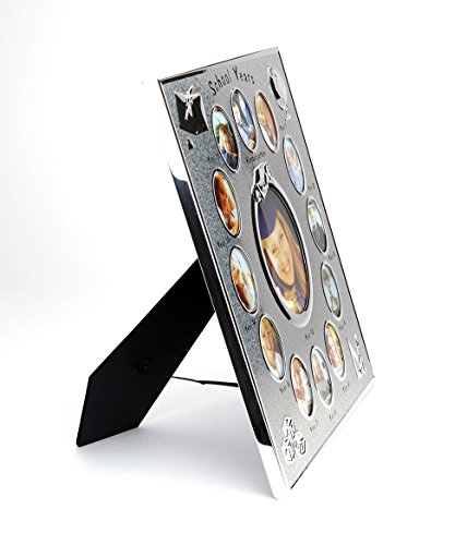 Stunning photo frame to hold all those school photos. This stunning frame is made of shimmering black aluminium with a velvet back. It holds a photo for each year from Reception to Year 12. Presented in a lovely gift box, making it the perfect gift for birthday's, Christmas and many other occasions.