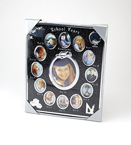 Stunning photo frame to hold all those school photos. This stunning frame is made of shimmering black aluminium with a velvet back. It holds a photo for each year from Reception to Year 12. Presented in a lovely gift box, making it the perfect gift for birthday's, Christmas and many other occasions.