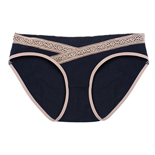 Intimate Portal Women's Under the Bump Maternity Knickers Lace Black Beige Large (2 Pack) is available in Knickers