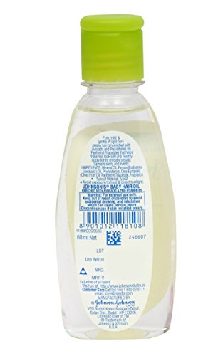 PRODUCT INFORMATION Johnson's - Baby Hair Oil Pure, mild and gentle. A light non-greasy hair oil enriched with Avocado and pro-Vitamin B5 (Panthenyl Triacetate) that helps make hair look soft and healthy. ---- Johnson & Johnson was founded more than 120 years ago. Since then, they have bought innovative ideas, products and services to advance the health and well-being of people. They have more than 250 operating companies in 60 countries. Johnson & Johnson group companies work with partners in health care to touch the lives of over a billion people every day, throughout the world. Barron's magazine, in 2010, ranked Johnson & Johnson #2 in the World's Most Respected Companies list.