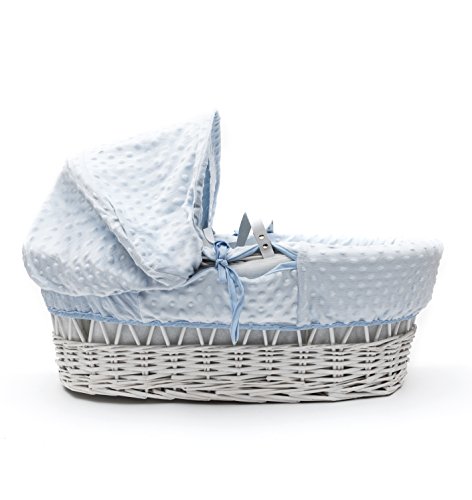 No additional information available for Kinder Valley White Wicker Basket, Blue Dimple