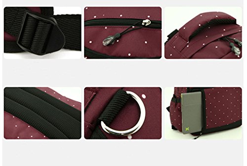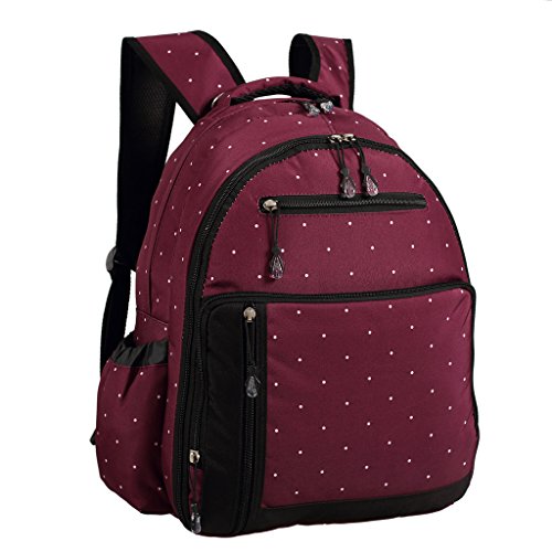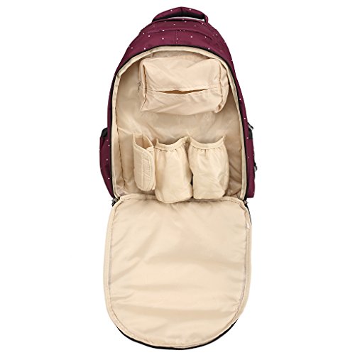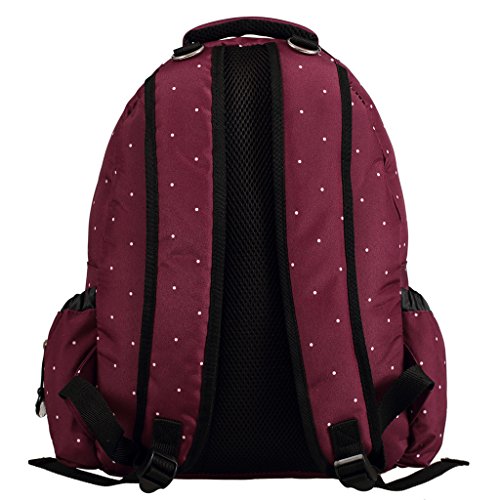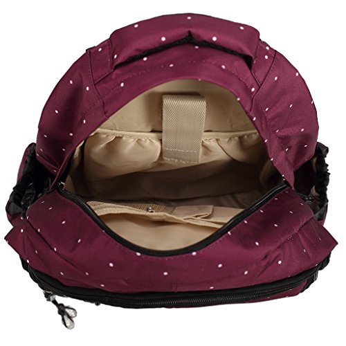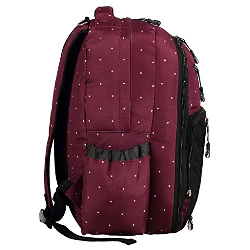 LCY Perfect Pockets Backpack Baby Changing Bag Wine Dots is available in Nappy Backpacks