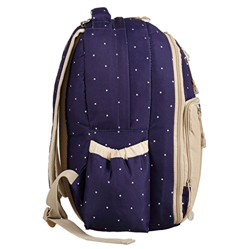 LCY Perfect Pockets Backpack Baby Changing Bag Dark Blue Dots is available in Nappy Backpacks