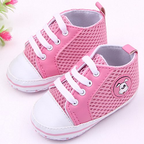 La Vogue Babies Unisex Dog Logo Sneakers Lace Up Trainers (Length 12cm, Pink) is available in First Walking Shoes