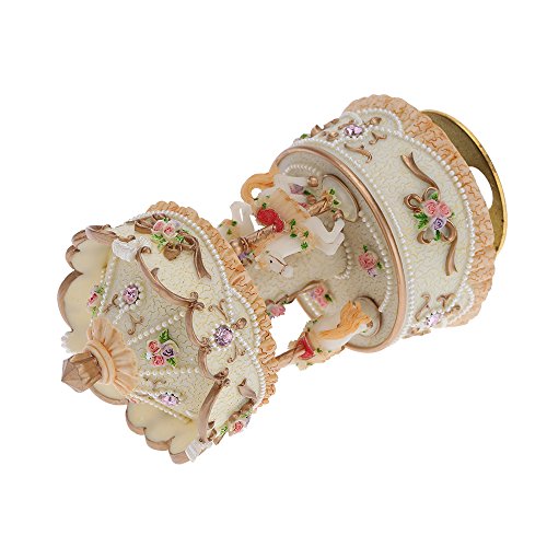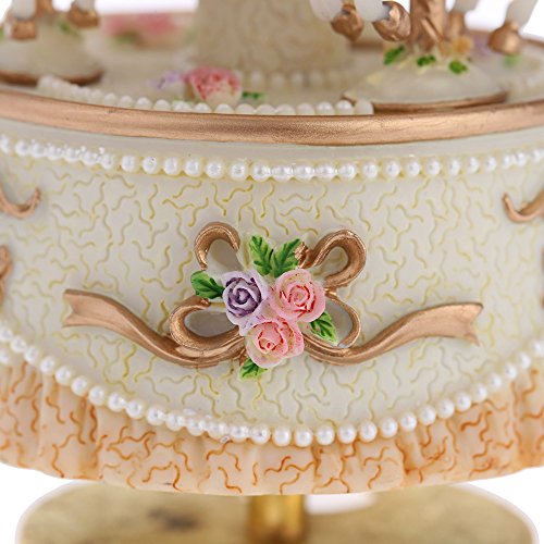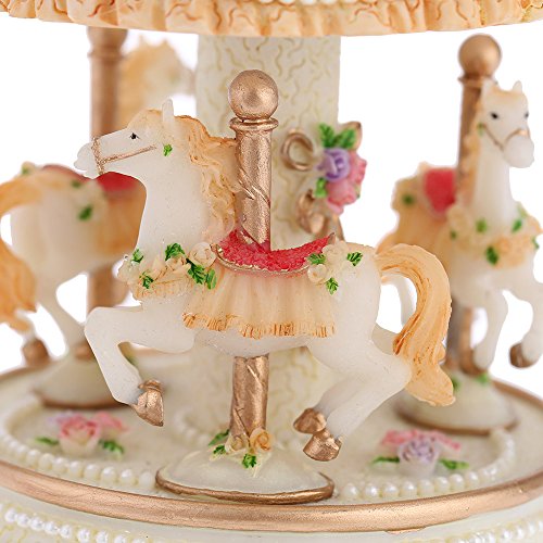 Synthetic resin music box. Romantic carousel music box. Beautiful design, good carving skill. Wind up to drive in the mice music.