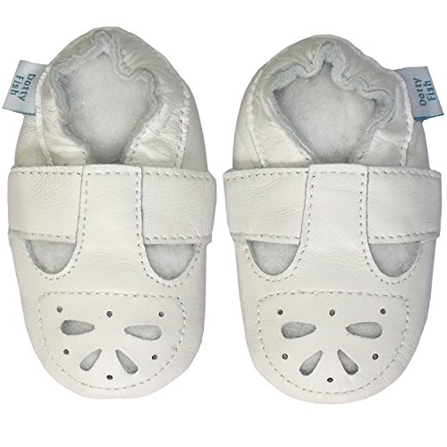 Soft Leather Baby Shoes with Suede Soles by Dotty Fish. White Mary-Jane Sandal Design Girls 6-12 Months is available in First Walking Shoes