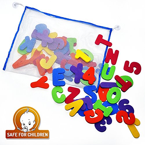 Bath Letters And Numbers With Bath Toy Organizer. The Best Educational Bath Toys with Premium Bath Toy Storage and Non Toxic BPA Free Foam Letters. The Perfect Gift With Free Bonus Toddler Care Guide E-Book is available in Bath Toys