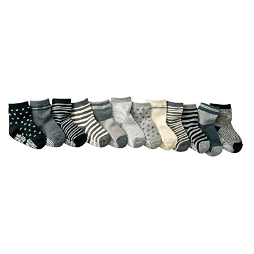 These 12-Pairs-Pack Non-Skid Cotton Socks are well suited for baby boys or girls to keep their feet warm in all seasons.