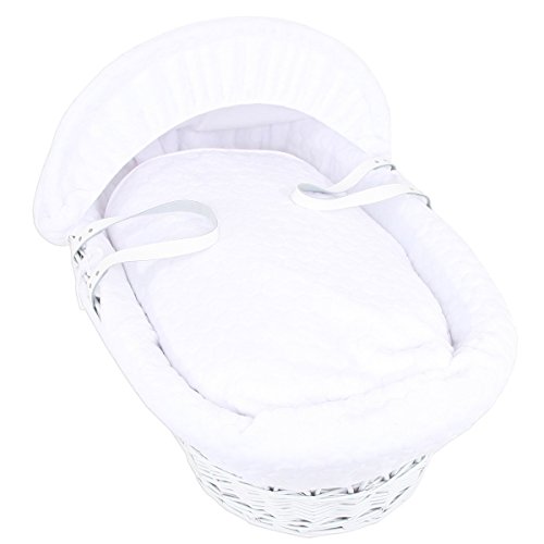 Luxury British Made White Wicker Moses Basket With White Marshmallow Covers And Folding Stand (White) is available in Moses Baskets