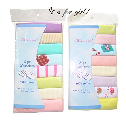 Lvge Baby Girls Cotton Cloth Washing Bath Shower Feeding Wipe Towel Pack of 8 is available in Wash Cloths & Wash Gloves