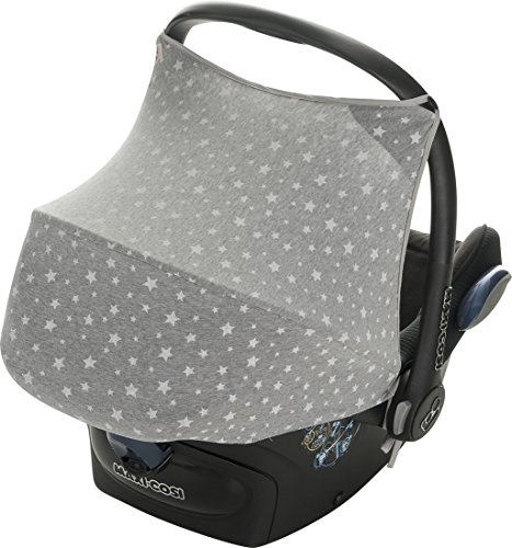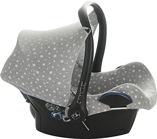 Maxi-Cosi cabriofix hood. Made of 100% cotton knit. Grey color with white stars pattern. Customize your Maxi-CosiĀ® and give an original and modern touch with this wonderful hood that can be combined with the matching Maxi-Cosi Cover (sold separately). Easy installation. Made in the European Community.