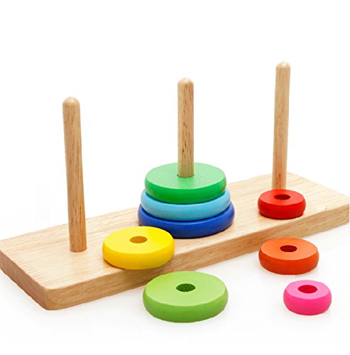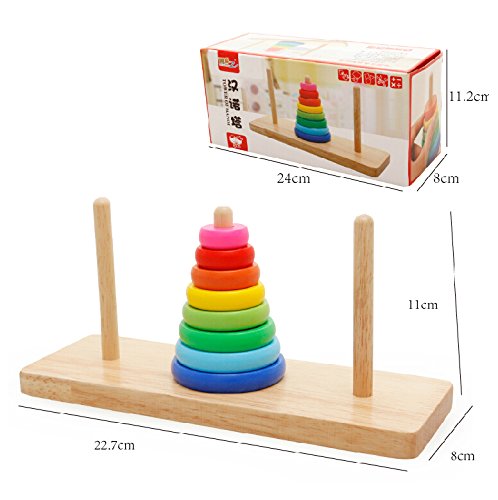 Verified Purchase This review is from: MWZ Tower of Hanoi Rainbow Stacking Rings Stcacker Board Wisdom Development Wooden Building Set Puzzle Game for Baby Kids, 3-Year-Old (Toy)