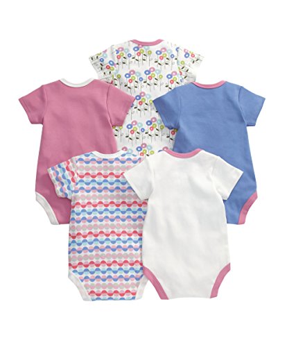 Mamas and Papas Baby-Girls 5 Pack Round Flower Bodysuit, Multicolour, 9-12 Months is available in Rompers