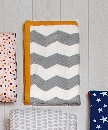 We love this because... ...This great-looking knitted blanket, in an on-trend chevron design, is a stunning accessory for any nursery, pram or pushchair. Also, as it is made from 100% cotton, it's lovely and soft next to baby's skin and breathable too.Other important details Machine washable at 40*C and tumble dryable at a low heat. Composition: 100% cotton Dimensions: 70cm x 90cm approx.