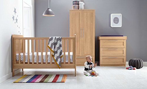 A stylish nursery with lots of storage and adaptability.Cot/Toddler Bed - Handy height adjustments - three different heights for optimum safety . - The very best rest - designed for cot bed mattress size, perfect for the support of the Mamas and Papas Sprung with Anti-Allergy cot bed mattress. - Big bed ready - head board and foot board split to make toddler bed from 18 months to 4 years (comes with 4 blanking nuts) - Safe as houses - toddler bed conversion conforms to all safety regulations (BS 8509: 2008) Age Suitability: Birth - 4 years Approx. Dimensions: H: 95.5 x W: 78 x L: 144cm Approx. Weight: 38kg/84lbs Approx.Click to view the mattress comparison chartDresser with Changer - The Rialto dresser/ changer has been updated to improve its appearance, functionality and construction and now includes a full depth changing unit that has no overhang at the back of the dresser. - The 3 deep drawers now offer extra space to give you even more storage for all of your little ones essentials. - The changer can be lifted off leaving the dresser only to grow and adapt with your little one. - The changer is suitable for children up to 12 months, with a maximum weight of 11kg - The changer is designed for any of the Mamas & Papas changing mattresses, simply place within the barriers H: 95 x W: 84 x D: 54cm approx.Wardrobe - Double up - two full-width hanging rails that can be removed to fit clothes when baby grows. - Space below - plenty of room at the bottom, ideal for an extra storage basket. - A little bit extra - The Rialto + range now includes added storage with a spacious and full depth drawer at the bottom of the wardrobe. H: 180 x W: 80 x L: 54cm Approx.Assembly - the choice is yours All our products are flat packed and can be self-assembled with easy to fo