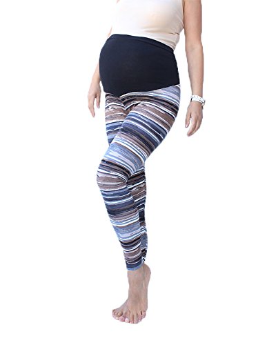Maternity Stripes Leggings Over bump, Brown, Black,Beige Stripes, No See Through Maternity Leggings (M) is available in Leggings