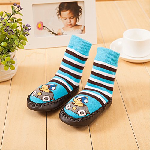 Moolecole Baby Boys Girls Moccasins Socks Toddler Socks Kids Antiskid Stockings Baby Shoes Slippers Infant Socks Non-skid Floor Socks Striped Car Boy 17cm is available in Tights