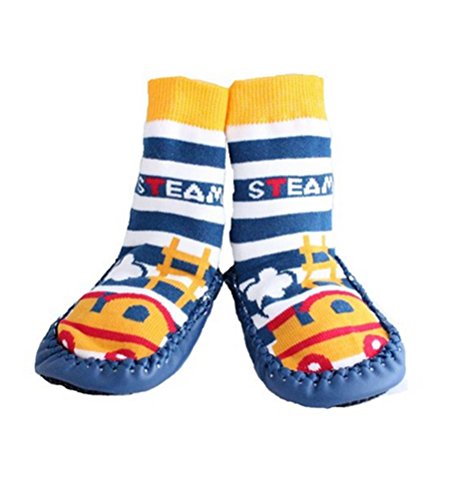 Verified Purchase This review is from: Moolecole Baby Boy Toddlers Kids Indoor Slippers Shoe Socks Moccasins ANTI SLIP Blue Steam Train 17cm (Baby Product)