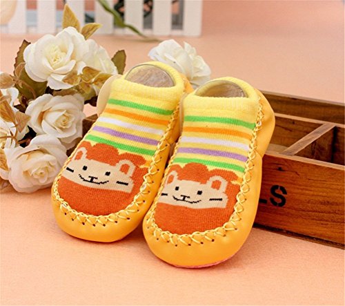 Moolecole Baby Boy Girl Toddlers Kids Indoor Slippers Shoe Socks Moccasins ANTI Skid Cute Floor Socks Shoes Yellow Cat 13.5cm is available in Tights