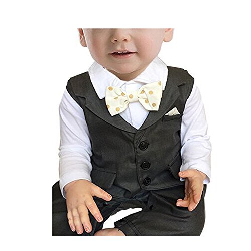 ZOEREA Newborn Infant Toddler Boy Babys Long-sleeved Cotton Gentleman Cute Black Vest Tuxedo Romper Jumpsuit Clothing With Yellow Polka Dot Bowknot (Size 95) is available in Suits & Blazers