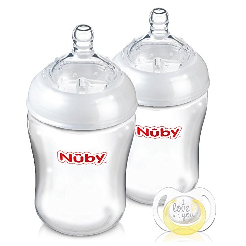 Nuby Natural Touch Baby Bottles with Free Soother, Pack of 2
