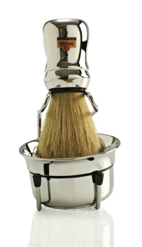 Omega 83.18 - Brush(10083), Stand and Bowl Set. Perfect gift for the beginner shaver! 100% Boar Bristle Shaving Brush, Chrome Stand and Chromed Plastic Bowl ABS handle. Made in Italy