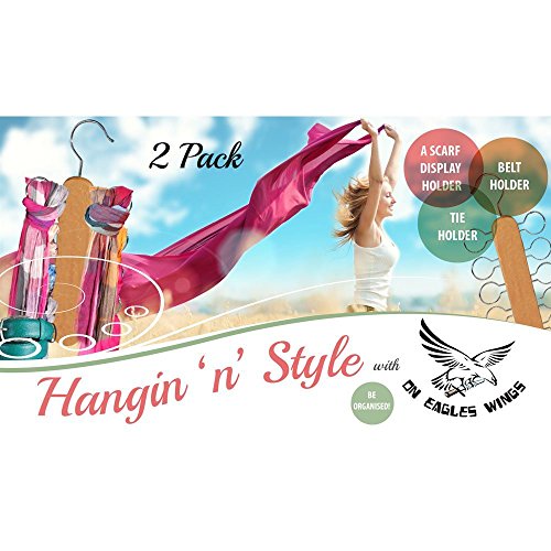 Scarf And Tie Holder for Your Fashion and Silk Scarves Great Closet Organizer for Shawls Wraps Pashminas Pack of 2 (Pair) Called "Hangin'N'Style" Wraps and Ties Display Beautifully on Space Saving Scarf Hanger Organize your Closet with this Scarf and Tie Rack is available in Coat Racks