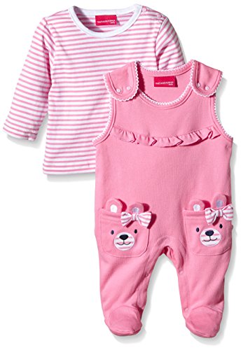 SALT AND PEPPER Baby Girls' Plain Crew Neck Long Sleeve Footie Pink Rosa (bubblegum 840) 50 (EU) is available in Footies