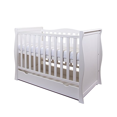 Verified Purchase This review is from: NEW PINEWOOD WHITE SLEIGH MINI COT BED & DRAWER + BRITISH MADE HIGH DENSITY FOAM SAFETY MATTRESS (Baby Product)
