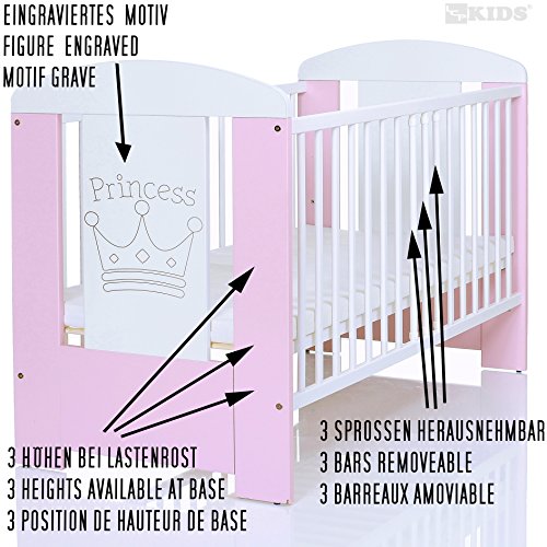 Verified Purchase This review is from: Baby Cot PRINCESS 120x60 maden of wood incl. foam mattress and 9 pieces bedding complete set (Baby Product)