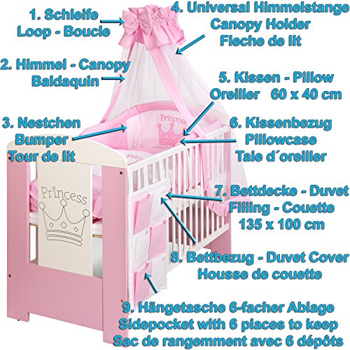Baby Cot PRINCESS 120x60 maden of wood incl. foam mattress and 9 pieces bedding complete set is available in Cots, Bedding Sets