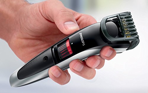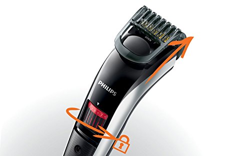 Philips Beard Trimmer Series 3000 - QT4013/23 Get the desired 3 day beard - easily. The beard trimmer series 3000 is the convenient way to style your facial hair and create designed stubble. This stubble and beard trimmer offers precision styling on hair from as short as 0.5 mm up to 10 mm. For corded or cordless use, you have 60 minutes of cordless power after 1 hour of charging with an easy to read battery light; green when full, blinks orange when low and blinks green when charging. When you want to look better, Philips has the right grooming solution for you. Philips offers a complete range of grooming tools to suit your needs, whatever look you're after - be it stubble, a short beard, a long beard, a moustache or a goatee. Desired 3-day Beard Everyday Set the trimmer at the lowest position for the desired 3-day beard, just 0.5 mm long. 20 Lock-in Length Settings Turn the wheel to simply select and lock-in the length settings you want - from a 3-day beard of 0.5 mm up to a full beard of 10 mm, in precise 0.5 mm steps. Skin-Friendly High-Performance Blades stay extra-sharp to always cut hairs neatly and effectively, but have rounded blade tips and combs to prevent irritation. Titanium Blades Enhanced titanium blades for high cutting performance and lasting sharpness. Ergonomic Design Easy to hold and use, it's designed to help you trim those hard-to-reach areas. Easy to Clean Detach the head and rinse it under the tap for easy cleaning. Dry it before you put it back on the appliance. Corded and Cordless Use For extra convenience the beard trimmer can be used cordless or plugged in. 1 hour of charging gives you 60 minutes of cordless power. Travel and Storage Pouch The soft and compact travel pouch protects your product during traveling and acts as convenient storage.