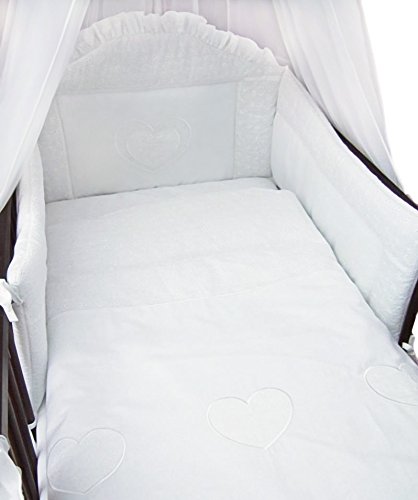 6 Piece Embroidered Baby Bedding Sets to fit Cot & Cotbed - (Cot 120 x 60cm, Hearts White) is available in Bedding Sets, Bedding Sets, Sheets