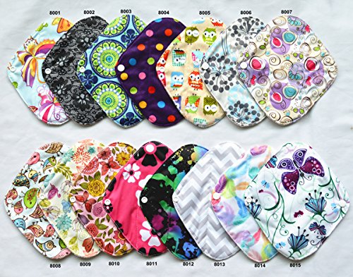 We have 4 sizes of both bamboo menstrual pads and charcoal bamboo menstrual pads for selling, length 8"panty liner, 10" regular/light flow, 12" for heavy flow, 14" for overnight or post partum, mini wet bags for you storing those pad, pls check out our other listings.