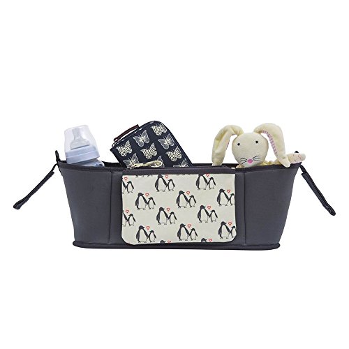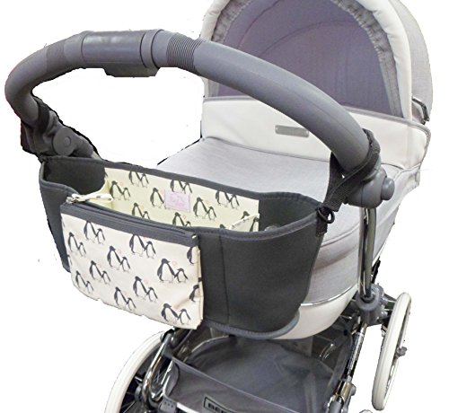 Pink Lining Pram/Stroller Buggy Organiser Bag - Penguin Love Includes Velcro Straps And A Detachable Purse Section is available in Messengers
