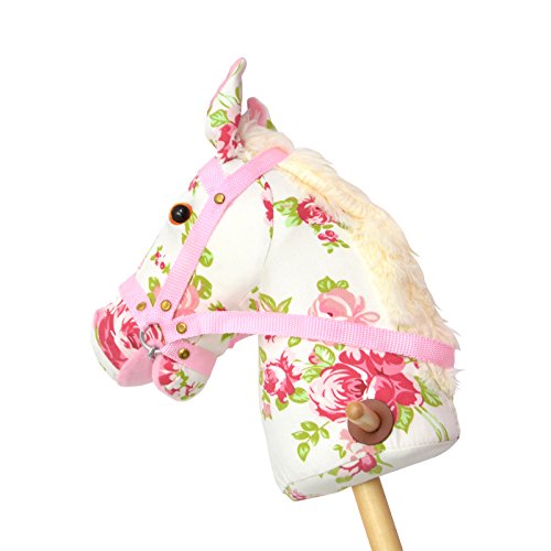 Pink Papaya stick horse, Flower, sweet toy horse made of fabric with neighing and galloping sounds - Colour: Flower pattern with white mane is available in Reins